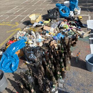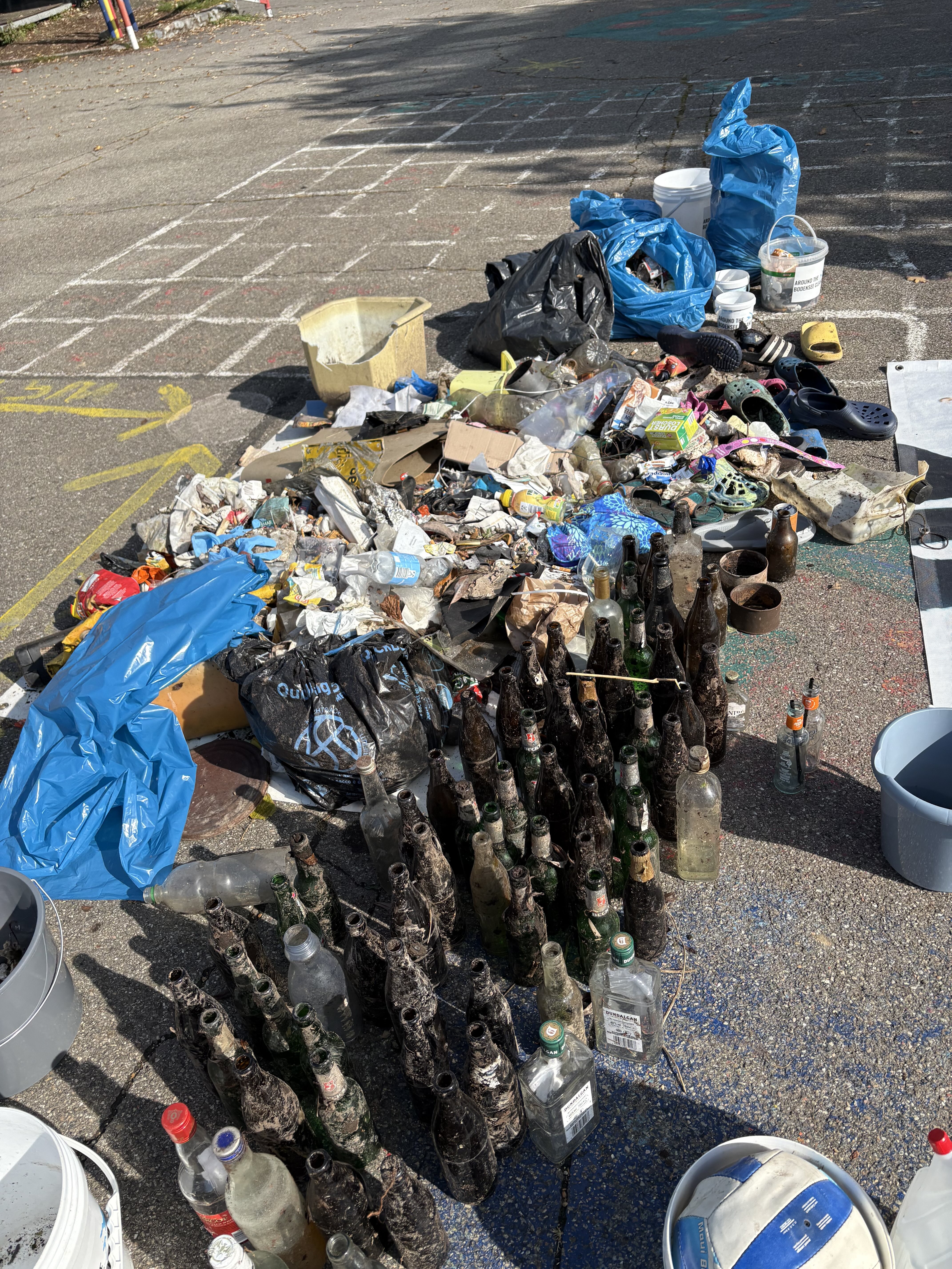 Mit großem Engagement fanden die Kinder Glasflaschen, alte Dosen, Kanister, Schuhe – und besonders viele Zigarettenstummel. Erschreckend war für viele, wie viel Müll sich rund um die Glascontainer angesammelt hatte: Dort lagen nicht nur Scherben, sondern auch Verpackungen, Dosen und anderer Unrat. Diese Beobachtung machte deutlich, wie wichtig es ist, Abfall richtig zu entsorgen und öffentliche Plätze sauber zu halten.