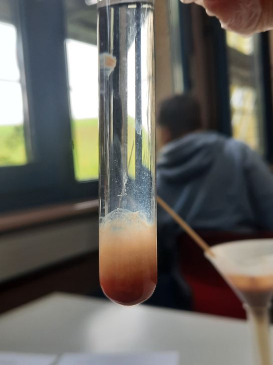 Die Klasse 10 hat im Biologie Unterricht die DNA aus der Leber und der Erdbeere entnommen.Unsere Vermutung war, dass die DNA fadenförmig aussieht. Dies hat sich nach einem Experiment bestätigt. Im Anhang können sie sich Bilder dazu anschauen.